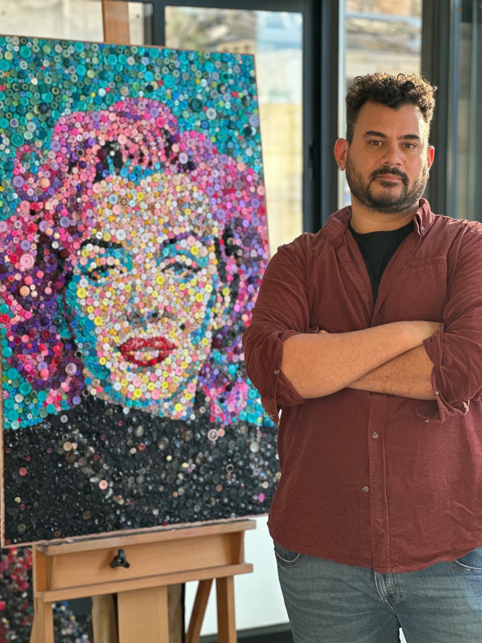 היצירה הראשונה הגדולה שלו הייתה בדמות 'מרלין מונרו' יצירה בגודל 140X100 שכללה יותר מ-5000 כפתורים. בהחלט מרשים!