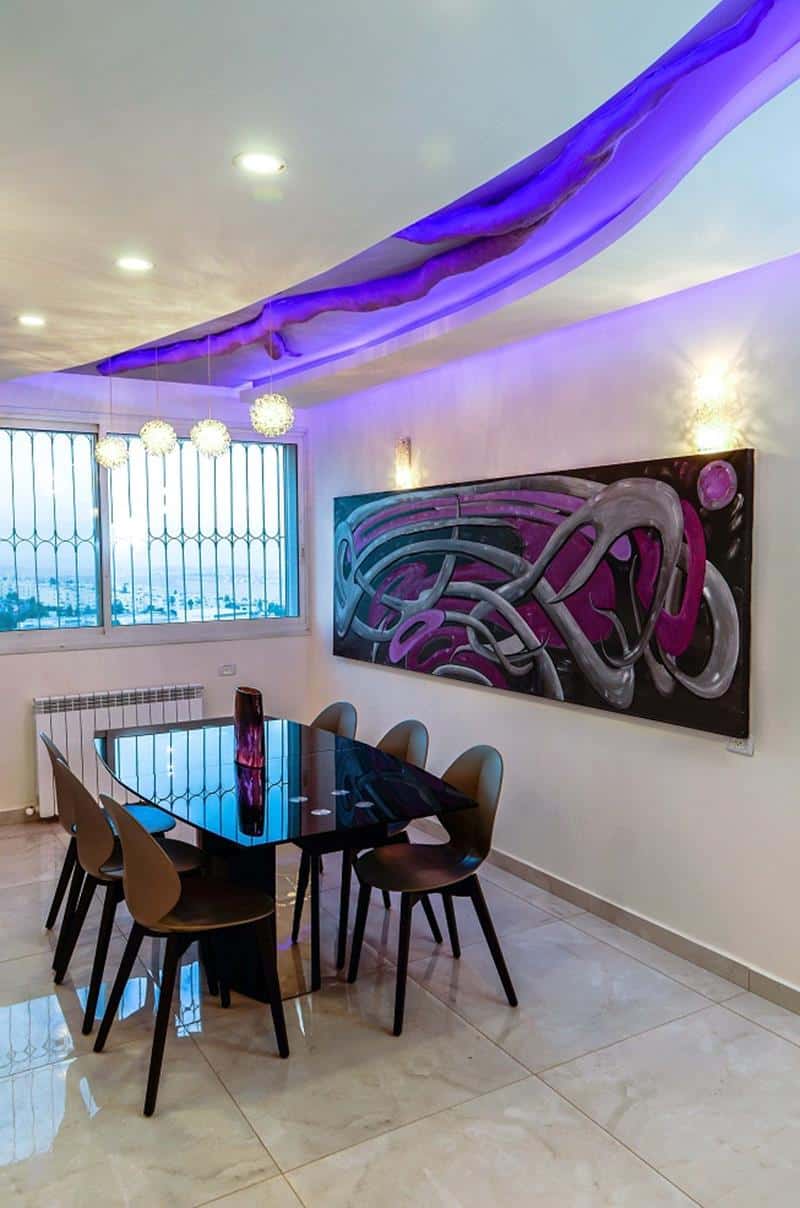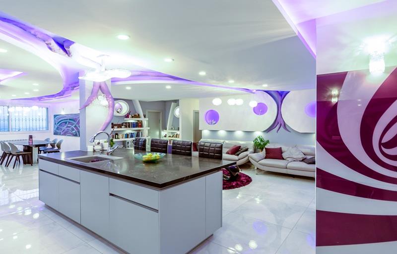 שלושה אלמנטים – התקרה, הגבס והתאורה – חוברים יחד בצורה לא שגרתית בבית שלפניכם, והופכים אותו למעין פסל סביבתי המסמל חיים חדשים