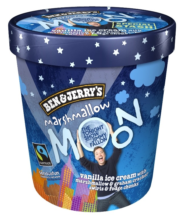חב' "בן& ג'ריס" משיקה בימים אלו בישראל, גלידת "מרשמלו מון" שיוצרה בהשראת ובשיתוף ג'ימי פאלון מנחה תוכנית הטלוויזיה "The tonight show ברשת NBC".