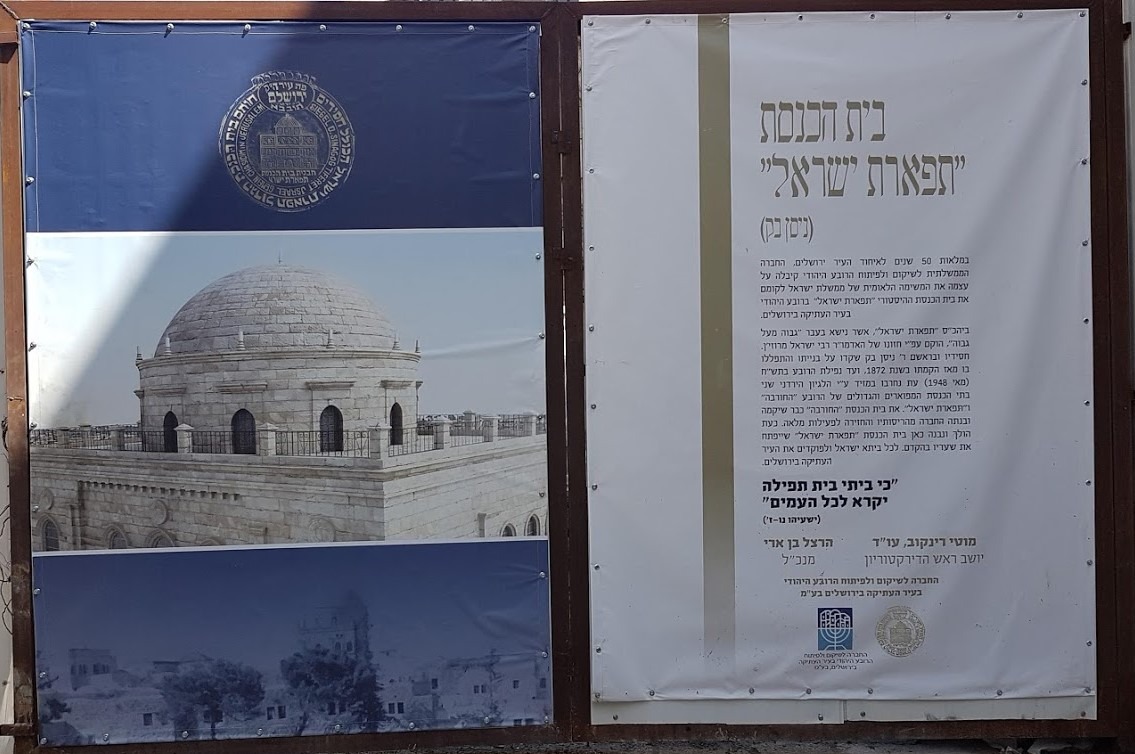 בית הכנסת 'תפארת ישראל', אחד מסימני ההיכר הבולטים של הרובע היהודי בירושלים עד שנחרב בשנת 1948. לפני כארבע שנים החלו במקום עבודות חפירה ארכיאולוגיות ולאחרונה החלו עבודות השיקום והשחזור של בית הכנסת, שצפוי, על פי התכנונים להתנשא לגובה של 25 מטר ולהתפרס על פני 4 שנים.