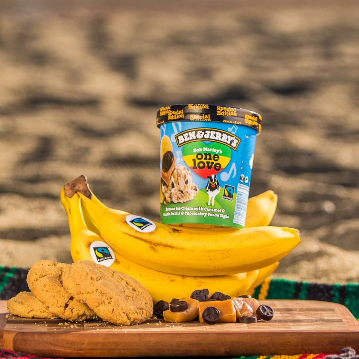 לכבוד 40 שנה לאלבום "אקסודוס", כמחווה לזמר הרגאיי האגדי בוב מארלי, חברת בן & ג'ריס מחדשת את הטעם עם שם חדש – בוב מארלי "One Love" גלידת בננה, קרמל, סווירל של פירורי עוגיות וסמלי שלום מפאדג'.