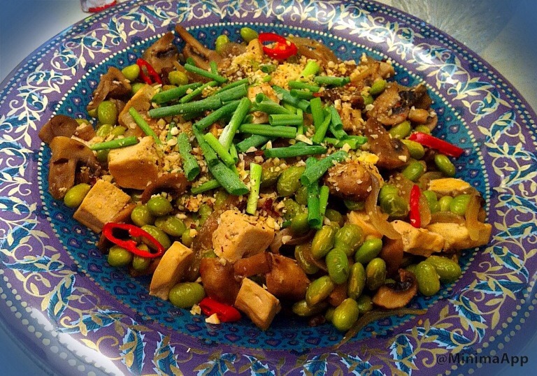 מנת חציל שרוף שהוגש עם וינגרט, אגוזים, גרגירי חומוס וטחינה גולמית