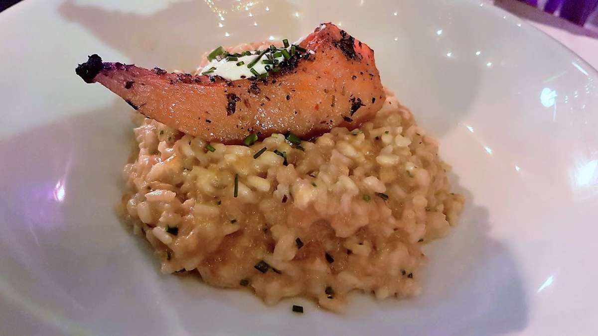 ריזוטו דלעת- דלעת מקורמלת בבישול ארוך, ציר דלעת, קרם פרש ועירית- 78 שח.