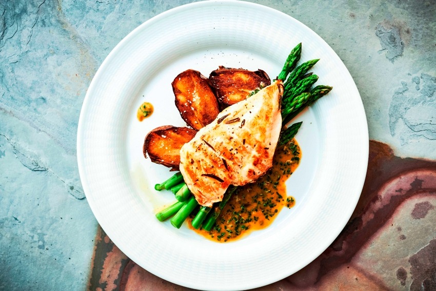חזה עוף לימונה – חזה עוף במרינדה ארומטית, אספרגוס, תפו"א מושחם ורוטב קרם לימון עם צלפים, עירית וקולפניות פרמז'ן- 83 שח. לא טעמתי את המנה.