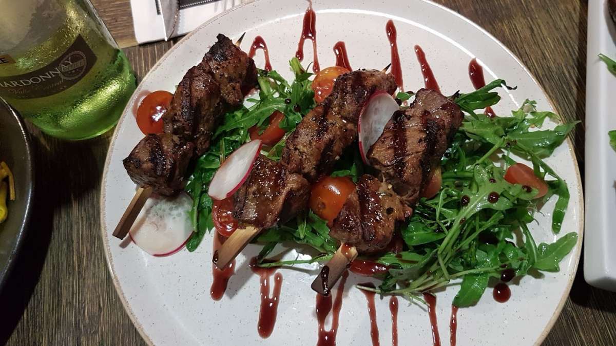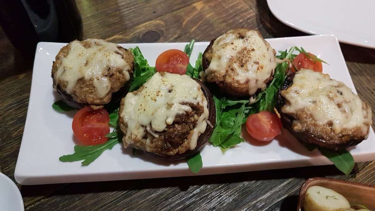 אל השולחן הוגשו ללא הפסקה מגוון מנות ראשונות, כגון: כנפי עוף בצ'ילי, נקניקיות בוואריות, כדורי גבינה, פטריות מוקפצות, קרפצ'יו בקר ועוד מנות שאת חלקם לא הספקתי לטעום. אבל התרשמתי מאוד לטובה מהמנות שכן שהצלחתי לטעום, הן היו על רמה גבוהה , הוגשו בצורה מאוד אסתטית וכמות נדיבה בכל מנה.