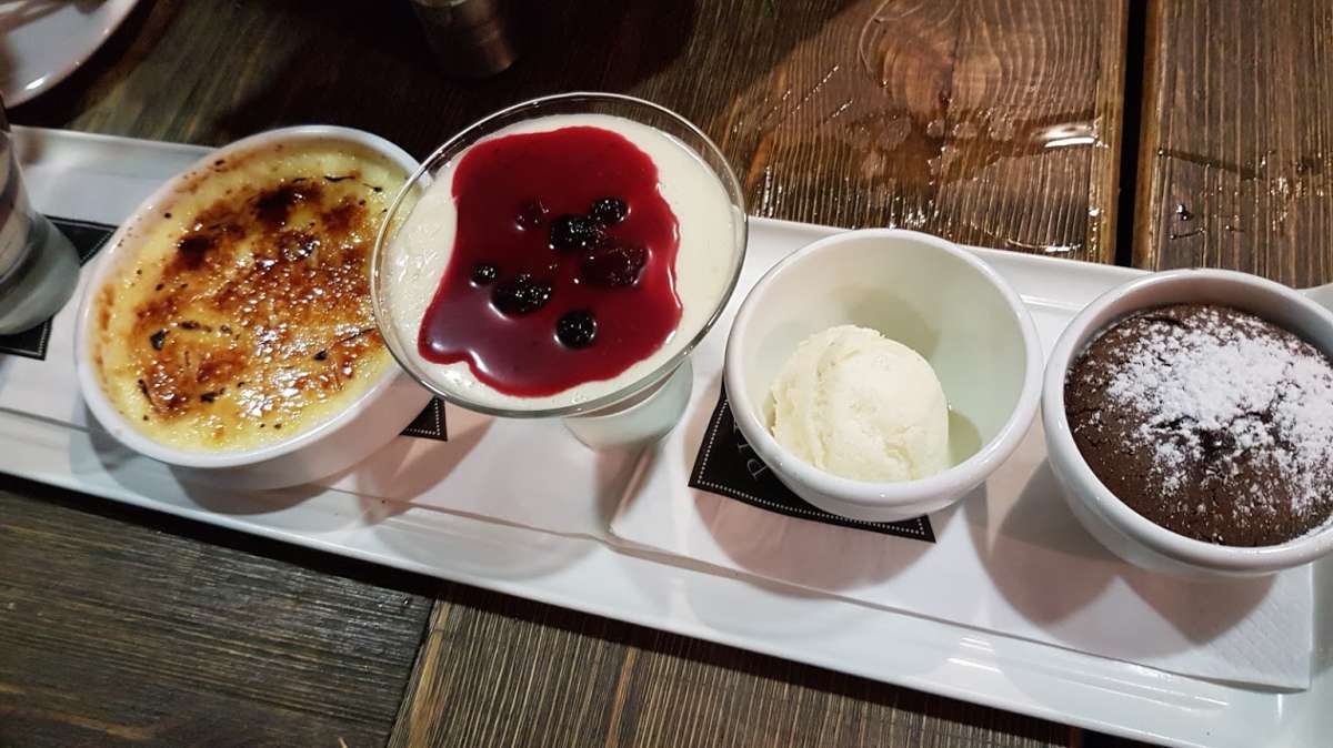 למרות שהייתי כבר ממש מלאה לא יכולתי לוותר על טעימות קטנות מהקינוחים שהוגשו לשולחן – סופלה שוקולד חם, קרם ברולה מצוין, קרם מסקרפונה עם תותים על מצע קדאיף שמאוד אהבתי.