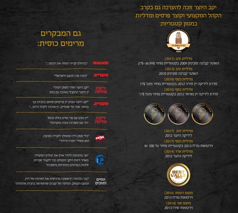 בגלריית יקב היוצר מספר סדרות בהן המשובחים שביינות: