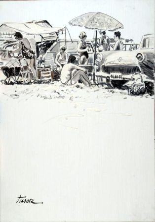 פנקס מורנו – פוגש את החוף התל אביבי הומה אדם, מתרחצים, משתזפים וממנגלים. במבט משועשע משהו ובראייה שאיננה נטולת גרוטסקיות, הוא מגחך אך אינו בז. החוף אצל מורנו הוא מקום מערטל במובנים רבים. פה ניתקל בישראלי המצוי נטול ה- "הפוזה". מורנו יושב מרבית זמנו בפריס ומבטו הוא מבט של "אורח נטה ללון".