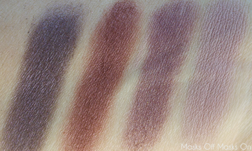 Sensuous – צללית סגולה שימרית (השימר מאד עדין), הפיגמנט די חלש, הסווטש שלה יוצא מפורר ולא אחיד, ויש לעבור עליו מספר פעמים כדי להגיע לסווטש אחיד ויפה. לכן, מומלץ להניח אותה על גבי פריימר או כשהיא רטובה!