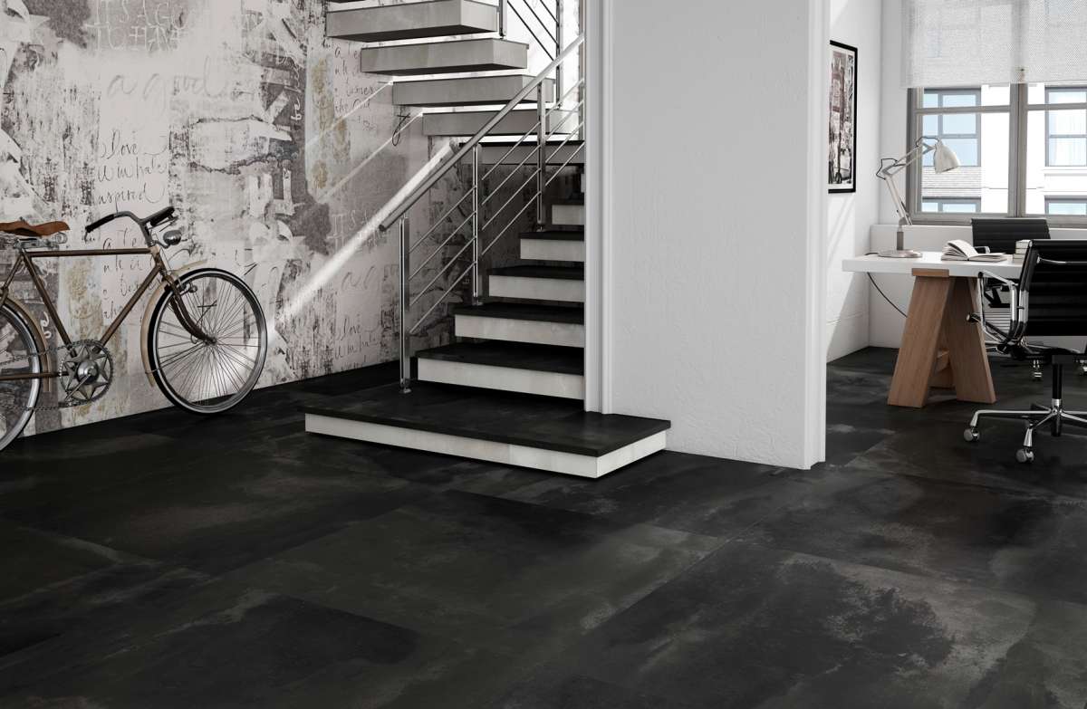 1. אריחים גדולים מאוד בגוונים אפור ושחור: