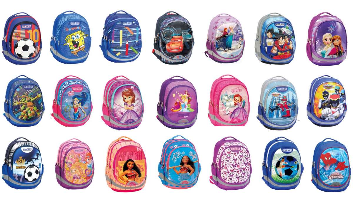 צבי הנינג'ה, פאוור ריינג'רס, Hello Kitty, WINX, הדרדסים , cars , הנסיכה סופיה, Frozen, מואנה , ספיידרמן, נסיכות דיסני ועוד … בנוסף, ברוח אהבת הבנים לספורט השיקה מודן תיקי כדורגל וכדורסל ייחודים וחדשים, כדוגמת מדריד וברצלונה.