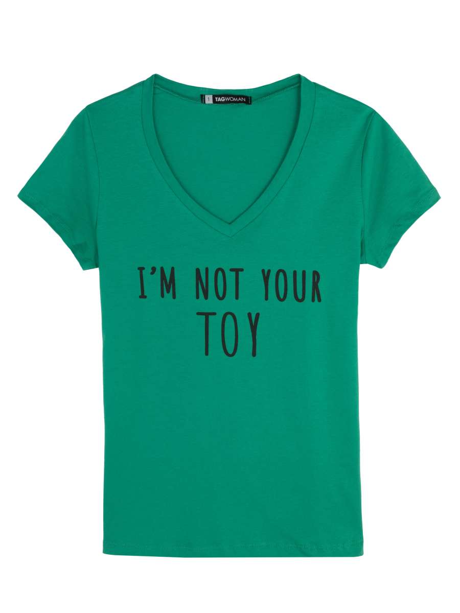 ניתן למצוא על החולצות משפטים שנכנסו ללקסיקון הישראלי כמו: "אני כפרה עליכם" ו"I'm not your toy"