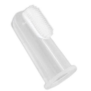 וזו המברשת הסיליקונית שדיברתי עליה למעלה- פשוט מדובר במברשת שמתלבשת על האצבע, בעלת סיבי סיליקון רכים וגמישים, שמסייעים בניקוי הפה, והתינוק מאד אוהב לנשוך.