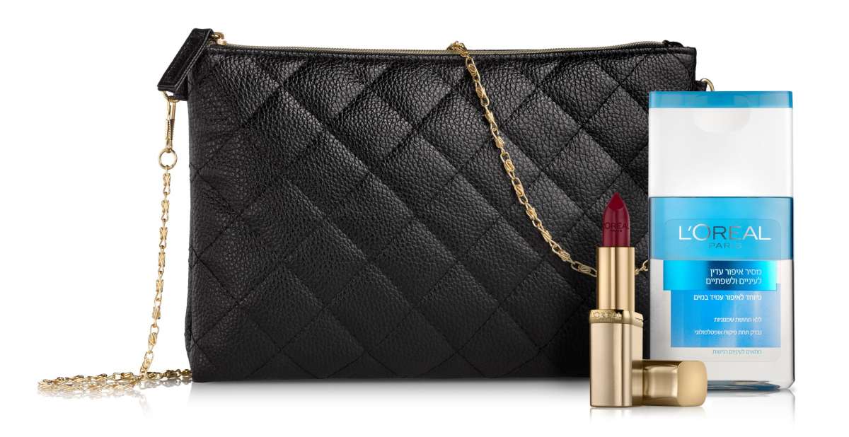 מותג האיפור והטיפוח הבינלאומי L'ORÉAL PARIS מפנק את לקוחותיו בחג: קונים מעל 199 ₪ ממוצרי המותג (איפור ו/או טיפוח פנים), מוסיפים 20 ש"ח ומקבלים תיק ערב אופנתי כולל 2 מוצרים בגודל מלא– מתנה!