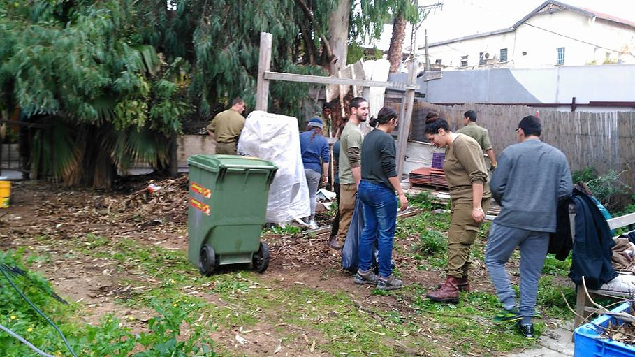 אז החודש החלטנו שאם נכנס אדר חייבים גם להכניס קצת שמחה ואהבה לבית המשפחה המיוחדת הזו, החלטנו להחזיר אהבה ויצאנו לפרויקט חברתי בהובלת המד"צים (מדריכים הצעירים) שלי וכל הצוות הצעיר והבוגר שלי (נוער בכיתות י- יב וגם ש"שינים (שנת שירות) וחיילים, כולם הוקפצו לשיפוץ הגינה בשני שלבים: שלב ראשון – פינוי קרשים וגרוטאות מהגינה הצנועה שלהם