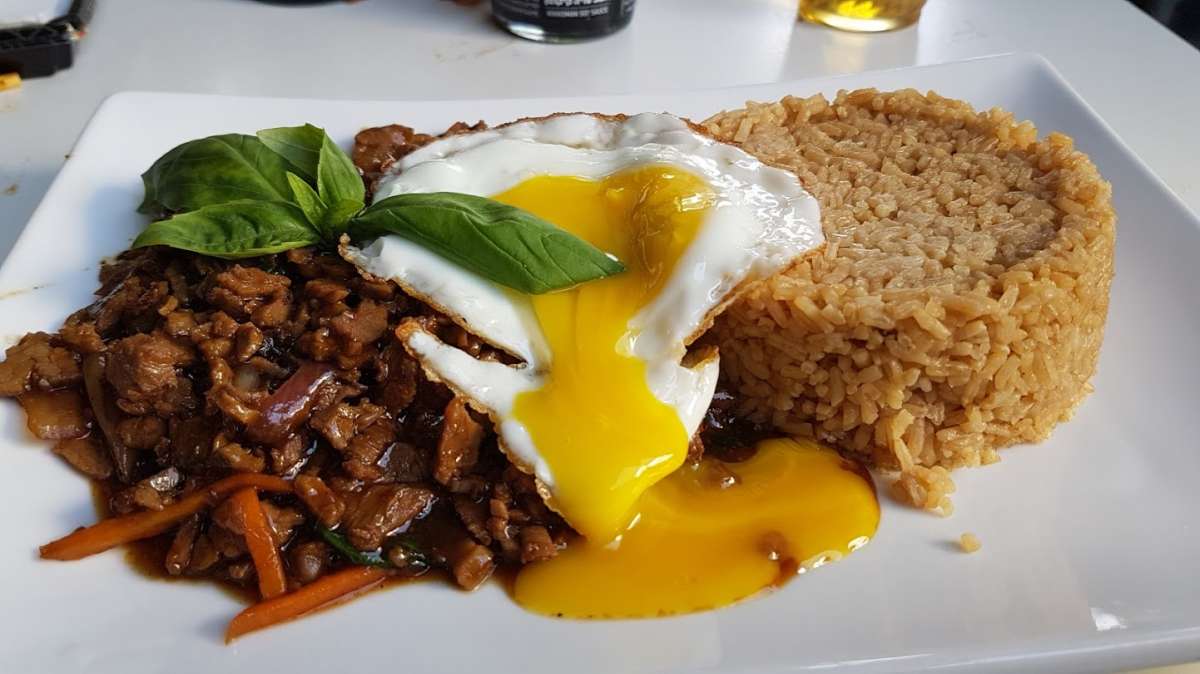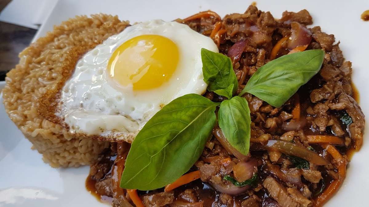 פאד קפאו מנה מאוד ייחודית וטעימה – בקר קצוץ,בצל סגול,גזר,שום וצ'ילי ברוטב פטריות,גינג'רלמון גראס ובזיליקום,מוגשת בתוספת אורז מאודה וביצת עין מעל – חגיגה מושלמת של צבעים וטעמים נהדרים