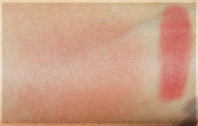- מרקם, פיגמנט וגימור: לסומק מרקם קטיפתי ורך, הוא נמרח ממש בקלות ויש לו פיגמנט חזק ומרשים, ועצמת הגימור על הלחיים תלויה בטעם האישי שלכן, ובעבודת הטשטוש. בעיקרון הגימור הוא כמעט מט, אם כי יש לסומק חלקיקים מנצנצים קטנטנים, המעניקים לעור מראה בריא וזוהר (אך ממש לא מנצנץ!).