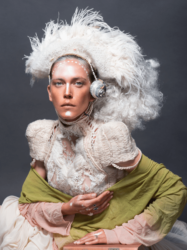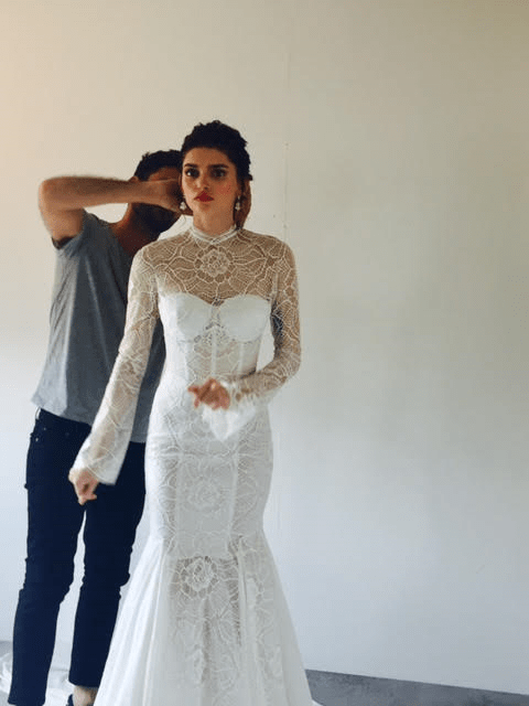 דוגמנית ויקטוריה סיקריט ההולנדית דוטסן קרואס, בוורסצ'ה אטלייה מהמם בלבן, עם עיטור כסף מתכתי