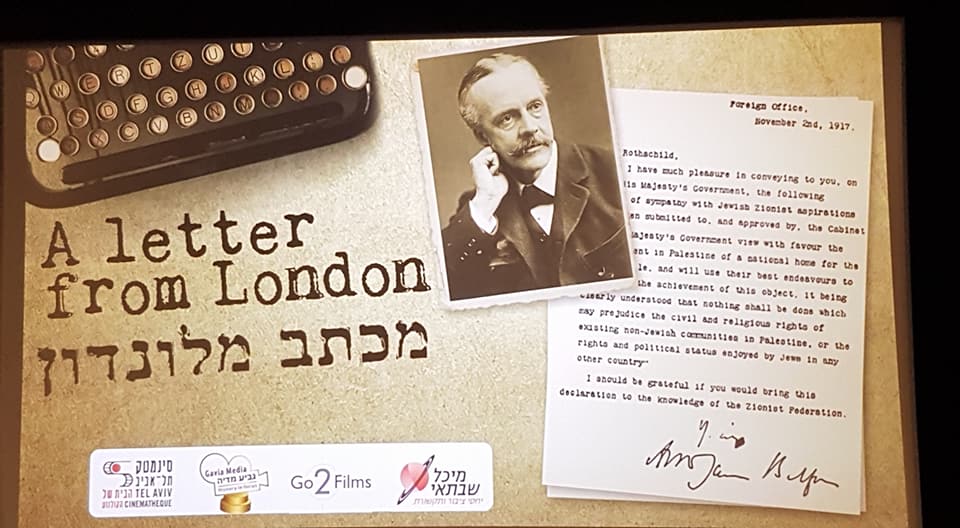 לרגל חגיגות ה- 70 למדינה, סרט תיעודי-היסטורי, בריטי-ישראלי "מכתב מלונדון", במאי דאג דאלגליש, תסריטאי מלווין ליפיץ', מפיקה בישראל: חנה דרורי קשי. הסרט באורך 50 דקות, בשפות אנגלית ועברית. קריינות: חיים יבין, הקרנת הבכורה כולל שיחה עם היוצרים, תתקיים ביום ראשון (25.3.18), בשעה 19:00, בסינמטק תל אביב.