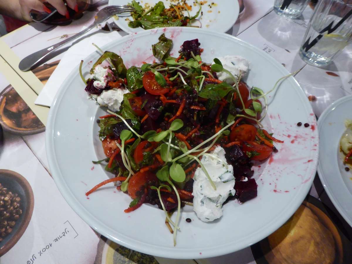 על הבר היפייפה שתופס את מירב המרחב של המסעדה, הוגשו לנו חמוצים יפניים וספרינג רול צבעוני על מצע סלט ירוק.