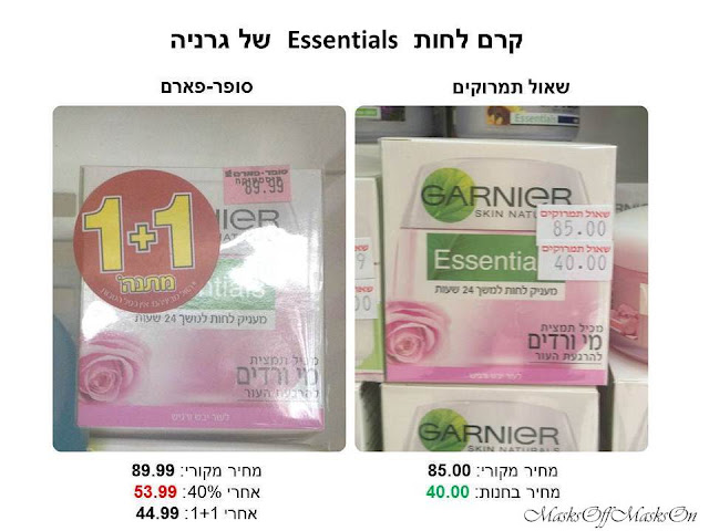 שנית, מבצעי 1+1- כדי להרגיש שאני עושה קניה טובה, ושאני חוסכת כסף, המציאו הפארמים את המבצע הזה (טוב אולי לא הם המציאו אבל המבצע הזה מזוהה איתם יותר מאשר עם כל חנות אחרת). מה שקורה בפועל הוא שאני משלמת את המחיר המופקע המלא על מוצר אחד, כדי לקבל עוד אחד במתנה. כדי לשלם בפועל 50% מהמחיר המלא של התמרוק ולקבל את ההנחה הטובה, הפארמים מאלצים אותי לקחת עוד מוצר, שבדרך כלל אני בכלל לא צריכה, ובסופו של דבר לשלם את המחיר הגבוה מבין שני המוצרים שבחרתי. בעיה נוספת, ועוד מעט תראו בתמונות, היא שלרוב גם אחרי מבצע 1+1 המבצעים האלה בכלל לא משתלמים. הם לא מגרדים את המחיר הרגיל של התמרוקים בחו"ל, והם גם גבוהים מהמחירים שתמצאו בתמרוקיות קטנות.