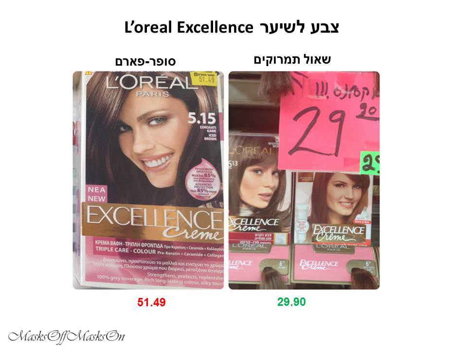 צבע לשיער: בגזרה הזו הפער מדהים! אמנם מדי פעם כן ניתן למצוא בפארמים מבצעים על צבעי השיער, אבל ברוב הפעמים שאני חיפשתי צבע לשיער בפארמים- או שלא היה מבצע בכלל, או שהיה מבצע רק על צבע של חברה ספציפית. המחירים של צבעי השיער של כל החברות בחנויות של שאול הרבה יותר זולים מהמחירים בפארמים.