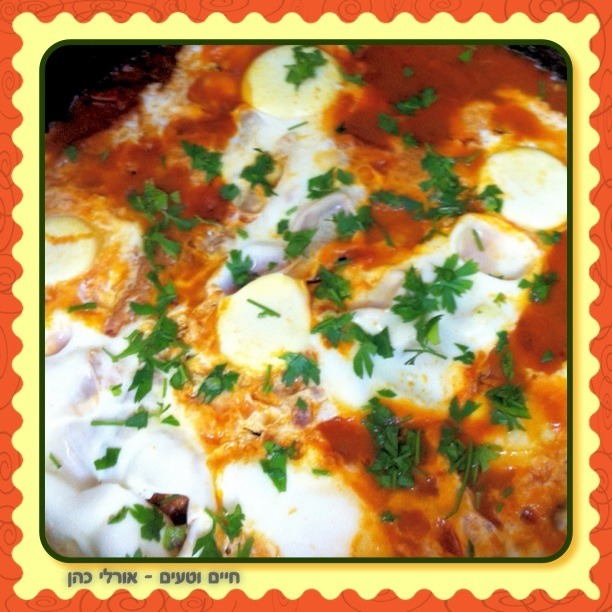 שרימפס חציל קלוי – חציל קלוי, יוגורט, שמנת ופטרוזיליה – לא אוכלת שרימפס – חברי לארוחה התפעלו מאוד מהטעמים של המנה